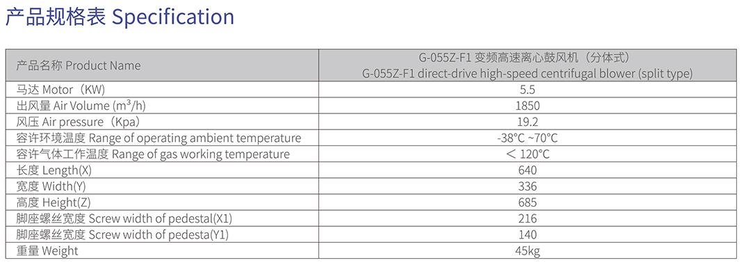歐冠G-055Z-F1變頻高速離心鼓風機(分體式)