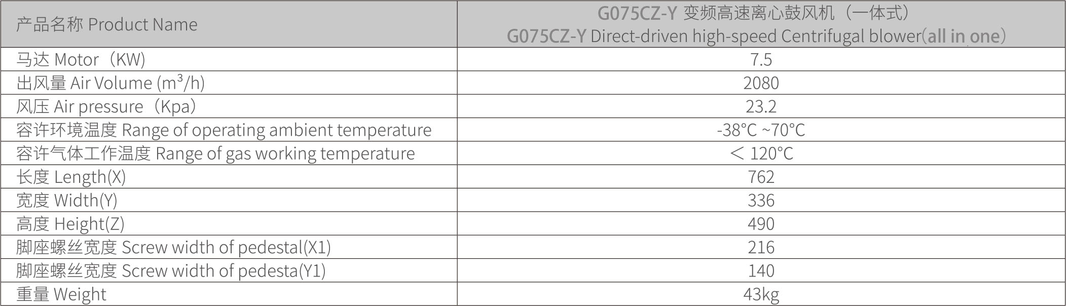 歐冠G-075Z-Y1變頻高速離心鼓風機(一體式)