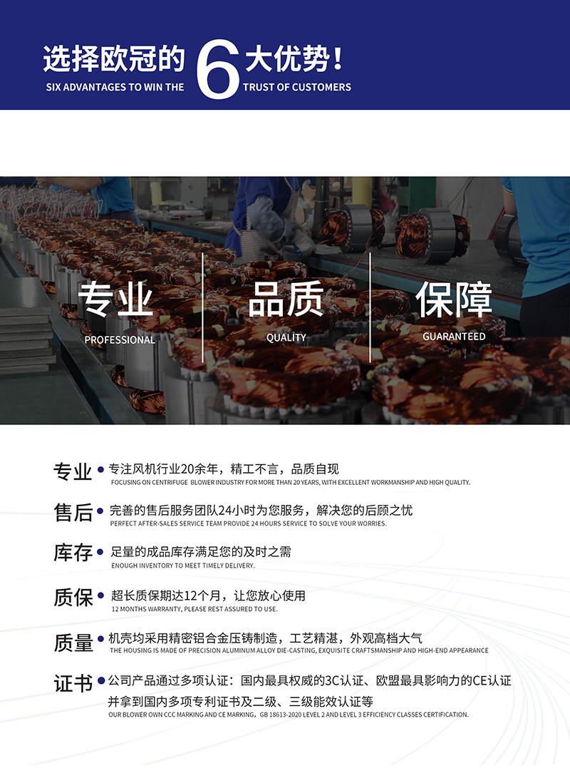 廣東歐冠智能風(fēng)機(jī)股份有限公司是專業(yè)鼓風(fēng)機(jī)研發(fā)、生產(chǎn)、銷售為一體的國家高新技術(shù)企業(yè)。公司成立于2001年,是國內(nèi)中壓風(fēng)機(jī)行業(yè)的龍頭標(biāo)桿企業(yè)。